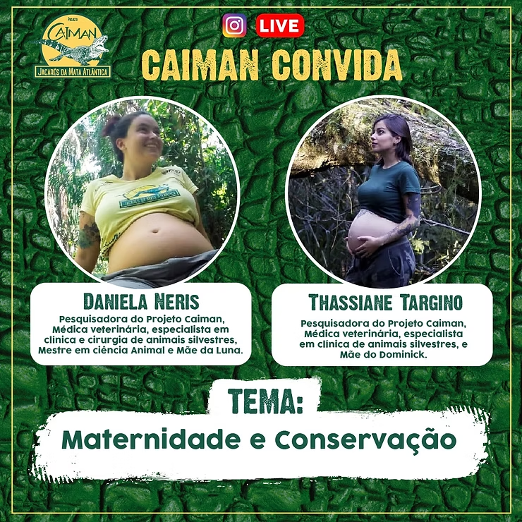 Na semana mundial da amamentação nosso bate-papo foi sobre maternidade e conservação. Conversamos um pouco sobre os desafios que geralmente ninguém comenta, como os desafios na amamentação e no controle do tempo e organização entre a vida profissional e pessoal com a M.V. Me. Daniela Neris e M.V. Thassiane Targino, ambas pesquisadoras do Projeto Caiman.