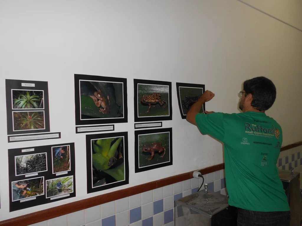 Expomos algumas fotos dos anfíbios bromeligenous de Santa Teresa na Escola Ethevaldo Damazio em novembro de 2012. Foram 15 dias, onde os alunos e pais puderam ver e ler algo sobre essas magníficas espécies habitantes de bromélias. Agradecemos a direção da Escola Ethevaldo Damazio pela autorização e apoio na realização dessa atividade.