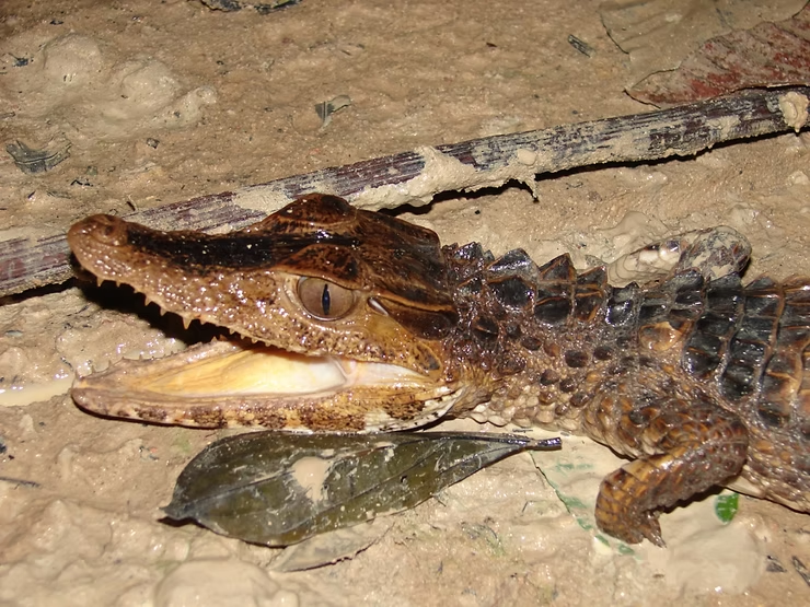 Estamos falando do ágil e belo Paleosuchus trigonatus, ou para os íntimos, o nosso belo e enigmático filho da floresta amazônica, jacaré-coroa.