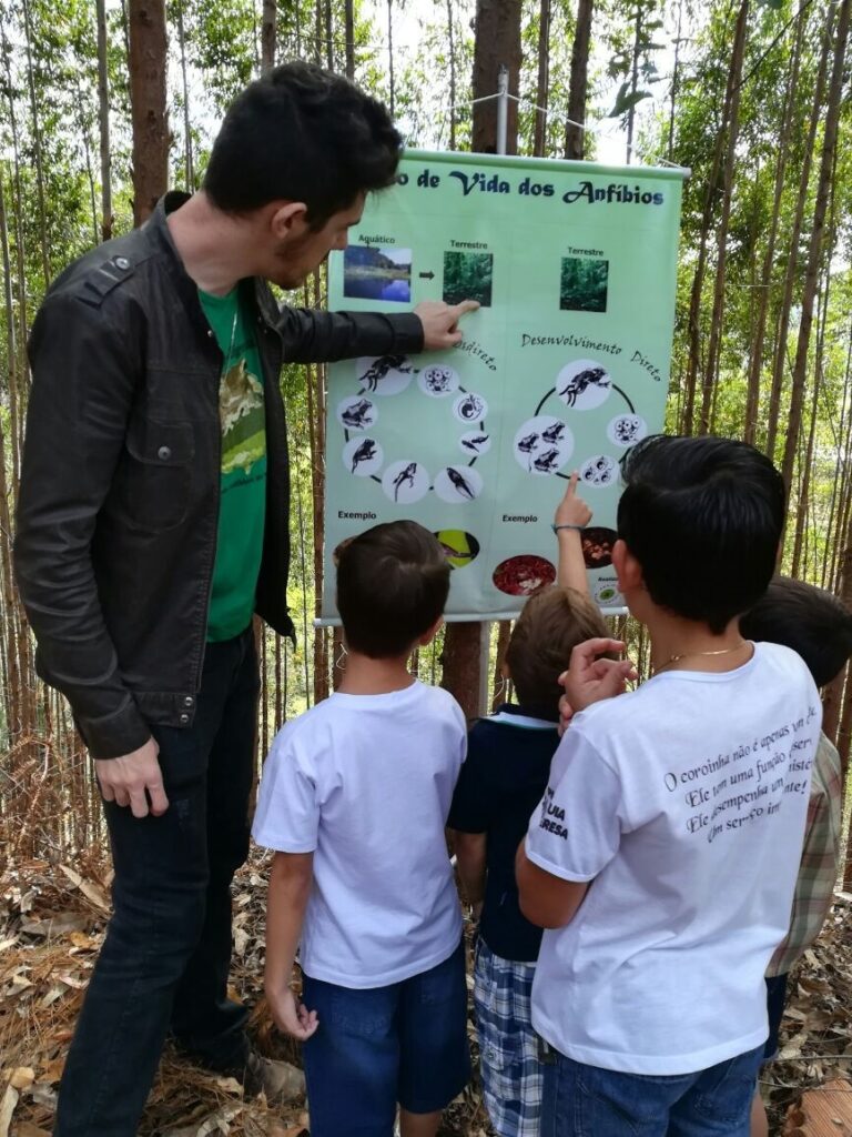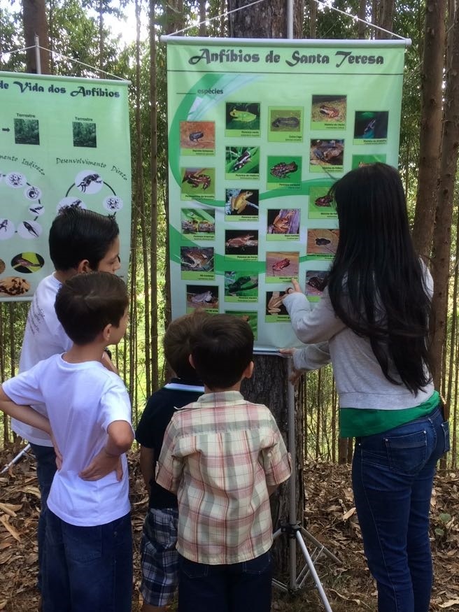 Ação organizada pelos biólogos do Projeto Bromeligenous mostra a importância dos anfíbios por meio de jogos infantis, atividades interativas, distribuição de mudas de árvores nativas e material informativo e, principalmente, muita conversa com os moradores do entorno da Reserva Biológica Augusto Ruschi, em Santa Teresa, ES.