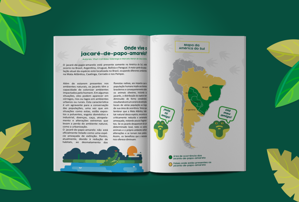 Nesta quinta-feira, 21 de dezembro, foi realizado o lançamento oficial do primeiro livro do Projeto Caiman nomeado “O jacaré de papo amarelo – Guia para Educação Ambiental”, e tem como objetivo capacitar os professores e educadores ambientais para o desenvolvimento de ações de educação ambiental utilizando o Jacaré-de-papo-amarelo como espécie bandeira para a conservação, o presente apresenta tudo que o um profissional deve saber para desenvolver a atividade. Apresenta conhecimentos sobre a história natural e conservação da espécie, tecnicas de educação ambiental e propõe algumas atividades para serem desenvolvidas.